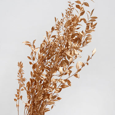 Our golden preserved Ruscus is a radiant and sophisticated choice for any floral or decorative project. Its rich, metallic colour adds a stunning, regal touch, bringing warmth and elegance to any floral display. Each stem is carefully preserved to maintain its natural shape and a supple texture, ensuring it adds a touch of classic beauty to your creations.