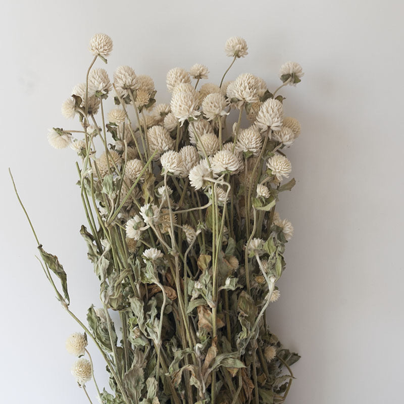 Embrace timeless elegance with our Dried Natural White Gomphrena Flowers. Perfect for sophisticated dried flower bouquets, serene door wreaths, or as graceful standalone decor.