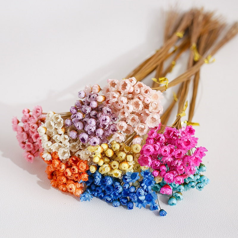Elevate your home decor with our beautiful dried Glixia Flower! These charming dried flowers are available in a variety of vibrant colours including white, magenta, green, blue, tiffany blue, yellow, orange, light pink and pink.