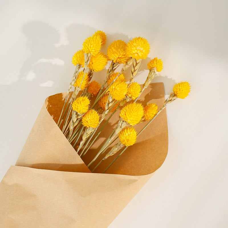 Get a cheerful burst of sunshine and captivating texture to your floral designs with our vibrant Preserved Yellow Gomphrena Flowers.