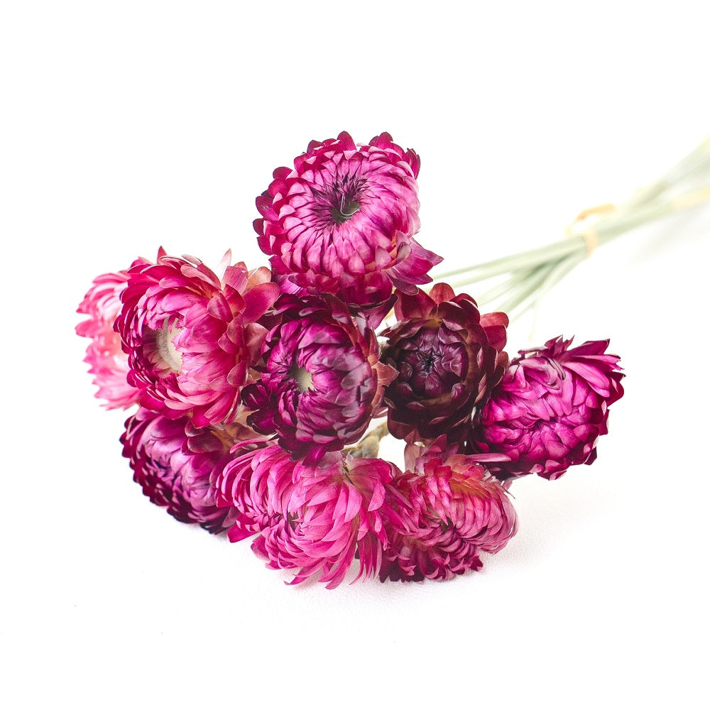 Discover the enchanting charm of our Helichrysum With Wheat Stems, a beautiful dried floral bunch featuring nine heads of natural purple helichrysum flowers.